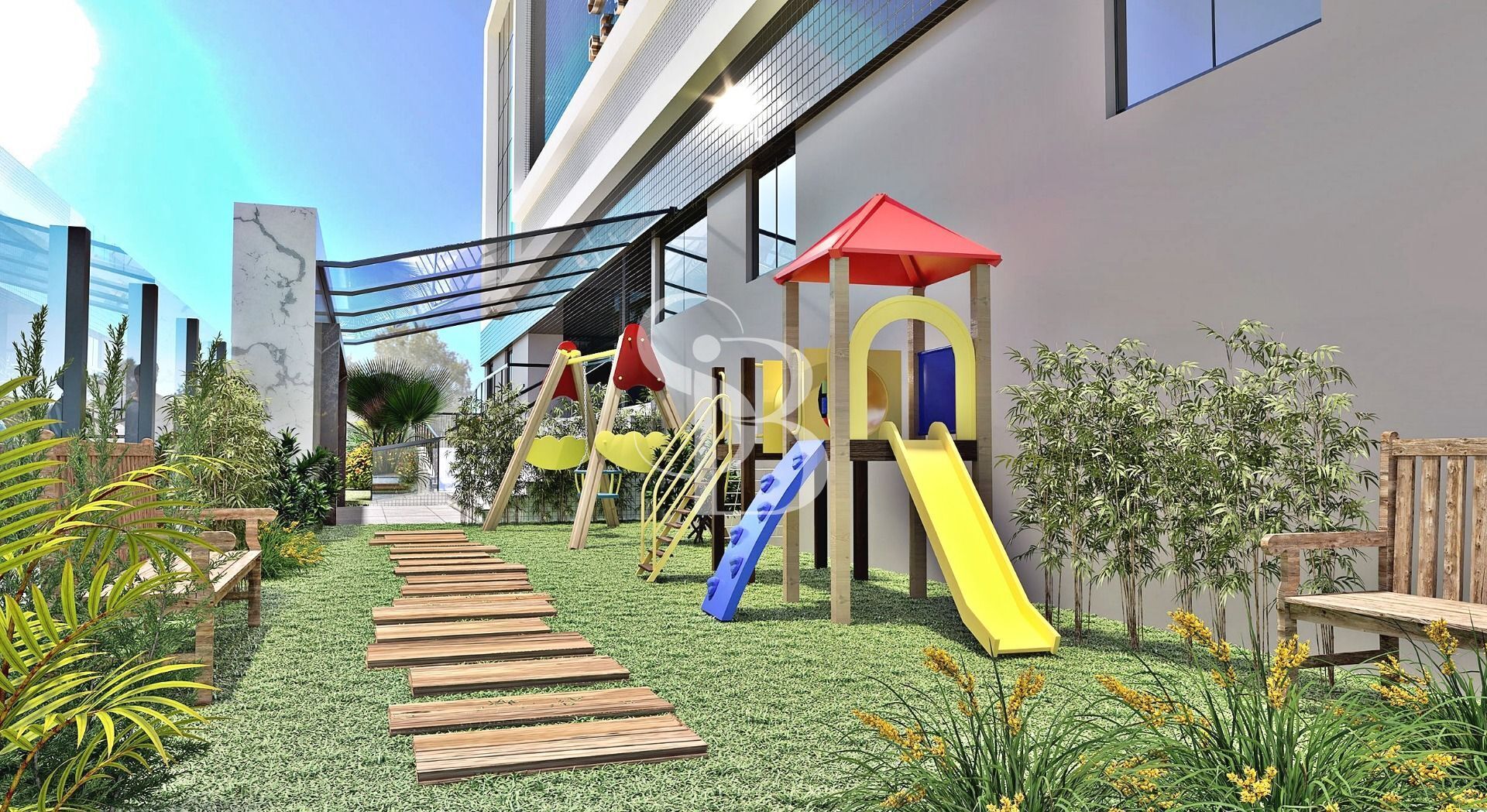 O condomínio vai ter salão de festas, espaço gourmet, academia com espaço funcional, sala de jogos, playground, brinquedoteca, bicicletário, e no Rooftop, piscina adulto, piscina infantil e terraço gourmet com uma vista magnífica.
